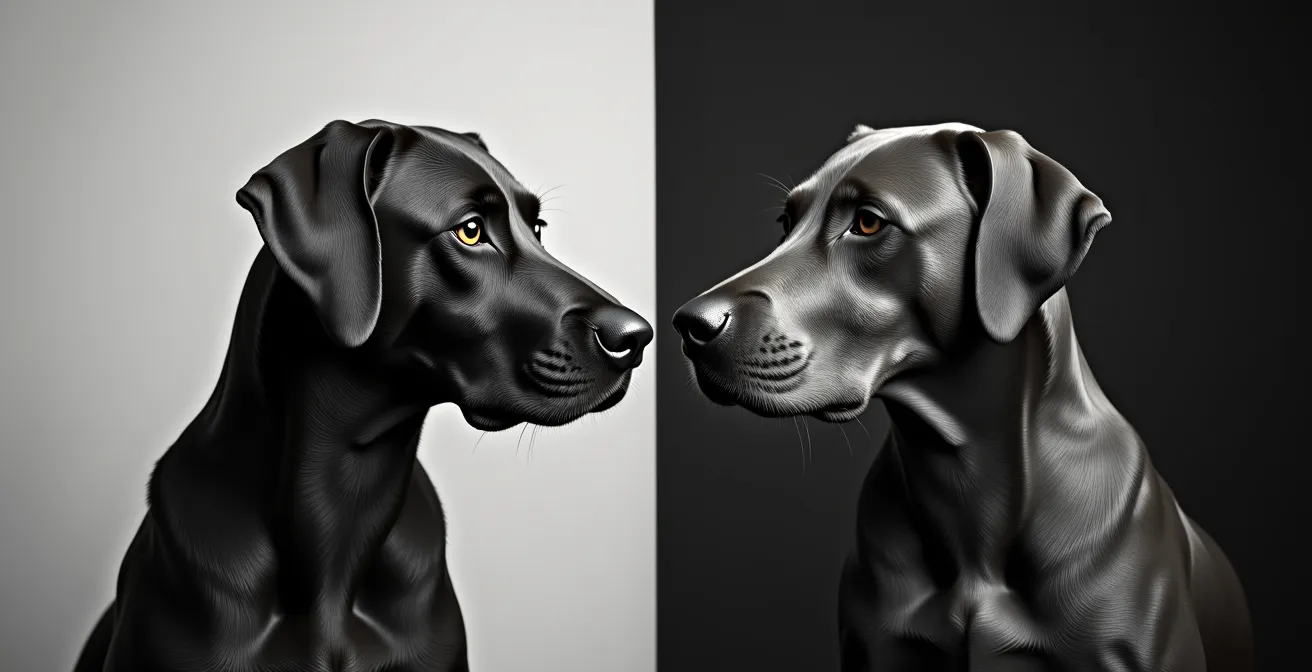 À l’inverse, une couleur très foncée ou mate peut parfois « absorber » la lumière et rendre les contours du chien moins lisibles de loin. Cela ne signifie pas qu’un chien gris souris sera moins bien jugé, mais sa présentation devra être irréprochable pour que ses qualités structurelles soient parfaitement visibles. L’influence de la couleur est un facteur subtil qui peut, à qualité égale entre deux sujets, faire pencher la balance. Certains experts suggèrent que les nuances argentées créent un contraste valorisant qui peut influencer positivement la perception globale du juge, notamment lors de la désignation du Meilleur de Race (BOB). Il ne s’agit pas de choisir une couleur pour plaire, mais de savoir que la nuance de votre chien peut demander un handling (présentation) plus précis pour compenser un manque de contraste visuel.